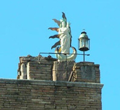 I Via dei Portoghesi, en sidegate til Via della Scrofa, finner du en bortgjemt perle med en vakker liten historie. Når du står og ser ned denne gaten oppdager du et middelalderbygg med en lykt og en Mariafigur på taket. Det er flere versjoner av den legenden jeg nå skal fortelle: