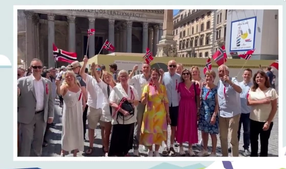 Kl 10:00 Bli med for å sende en hilsen fra Roma til Norge. Vi skal gjøre opptak som skal sendes til NRK for å vise glimt fra feiringen utenfor Norge. Vi møtes på Tempio Bar kl. 10:00. Ta gjerne 17. mai frokosten her 😊 Også tar vi opp en liten videosnutt og noen bilder. Alle velkomne og ta gjerne med norsk flagg.